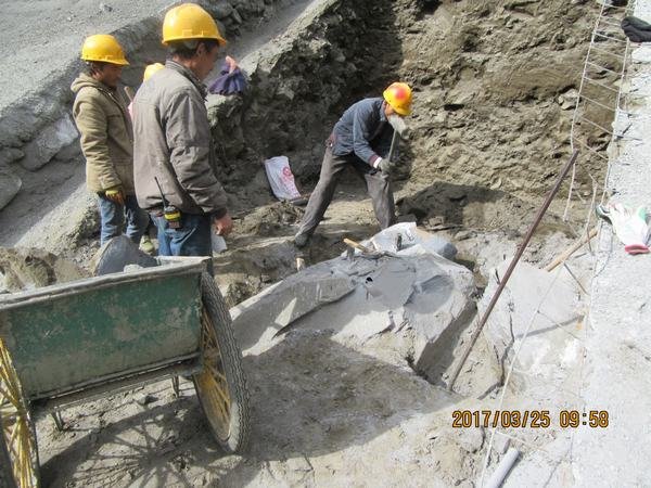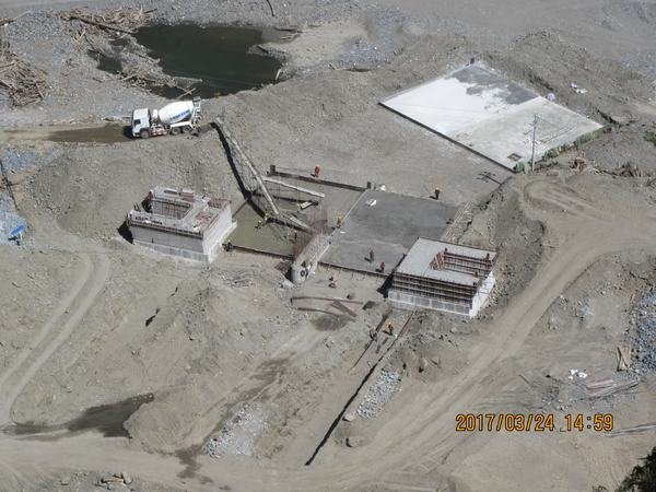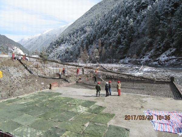 尾水橋橋臺(tái)施工尾水渠底板施工尾水渠擋墻基礎(chǔ)現(xiàn)場驗(yàn)收壓力管道支鐓人工開挖三四溝電站全景