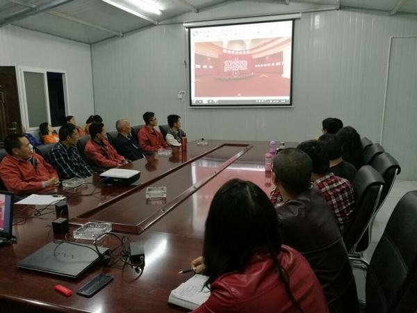2017年10月25日-27日晚,局三機(jī)處在博瓦電站項(xiàng)目部組織職工觀看了由中央電視臺(tái)網(wǎng)絡(luò)平臺(tái)播出的《砥礪奮進(jìn)的五年》大型成就展,處長(zhǎng)薛斌帶領(lǐng)全處員工重溫十八大以來(lái)黨和國(guó)家事業(yè)發(fā)展的輝煌成就。