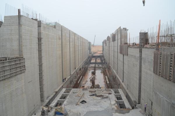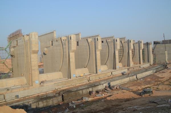 安裝場(chǎng)船閘閘室發(fā)電廠房進(jìn)口段公路橋橋柱、蓋梁攔污柵閘墩右岸閘壩上游