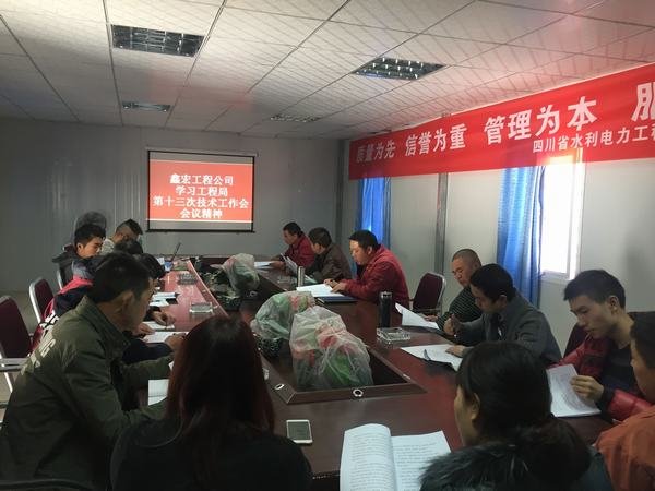 2017年11月24日中午,鑫宏公司在水洛河新藏電站項(xiàng)目部會議室組織召開專題會議,傳達(dá)學(xué)習(xí)2017年工程局第十三次技術(shù)工作會議精神,會議由公司總工程師鄭中華主持。
