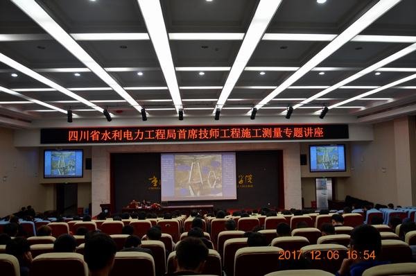 本次交流活動在重慶水職院學(xué)術(shù)報告廳舉行了三場測量專題講座活動,李春桃主要講述了首席技師工程室成立的背景和意義以及工程測量技術(shù)在國家各類建設(shè)中的作用,重點宣揚了我局的企業(yè)文化;魯興全分別例舉了一個國內(nèi)工程和國際工程施工實例,主要講解了施工測量技術(shù)具體操作規(guī)程和測量學(xué)理論基礎(chǔ)在施工中的重要性。水利系、建筑系、市政系師生分別參加了專題講座,每場專題活動師生們都興致高昂,專題會結(jié)束后雙方都會針對施工測量技術(shù)進行熱烈討論,學(xué)生們更是對施工現(xiàn)場測量工作充滿好奇和興奮,三場專題活動取得了圓滿成功。