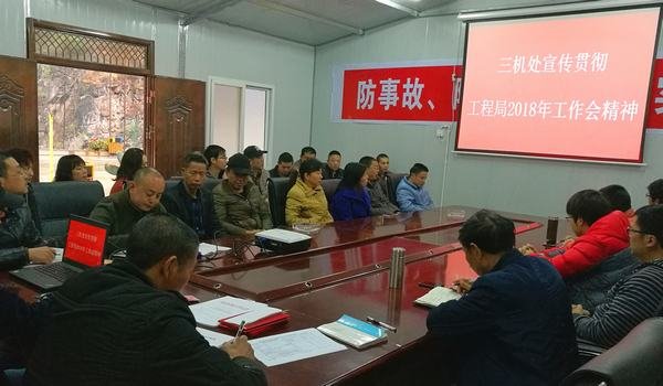 2018年4月6日晚,三機(jī)處在博瓦電站項(xiàng)目部組織全處職工學(xué)習(xí)貫徹工程局2018年工作會(huì)議精神,會(huì)議由處長(zhǎng)薛斌主持。