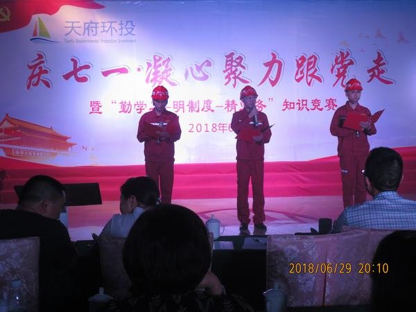 2018年6月29日,在喜迎中國(guó)共產(chǎn)黨誕辰97周年之際,應(yīng)業(yè)主邀請(qǐng),盤龍寺攔河閘工程項(xiàng)目部參加了由成都天府水城環(huán)保投資集團(tuán)有限公司組織舉辦的慶“七•一”文藝演出。金堂縣有關(guān)領(lǐng)導(dǎo)、成都天府水城環(huán)保投資集團(tuán)有限公司董事長(zhǎng)及施工單位負(fù)責(zé)人觀看演出。