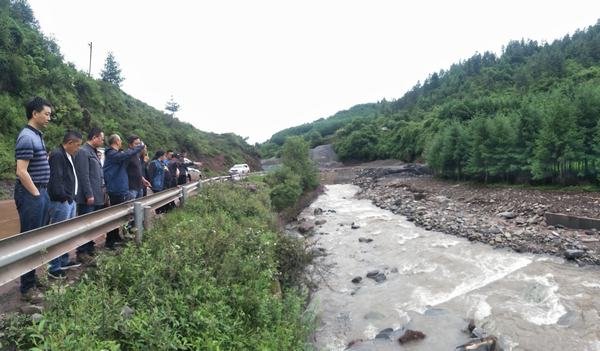 現(xiàn)場查看美姑縣依果覺供水站項目取水壩、過濾池受損情況
