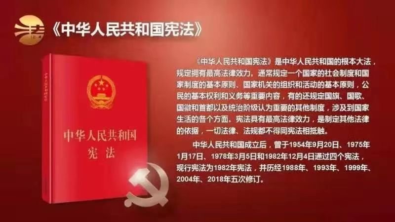 自中華人民共和國成立后,曾于1954年9月20日、1975年1月17日、1978年3月5日和1982年12月4日通過四個憲法,現(xiàn)行憲法為1982年憲法,并歷經(jīng)1988年、1993年、1999年、2004年、2018年五次修訂。在2014年11月1日召開的十二屆全國人大常委會第十一次會議經(jīng)表決通過了全國人大常委會關于設立國家憲法日的決定,設立每年12月4日為國家憲法日,因此2014年12月4日即中國首個國家憲法日。