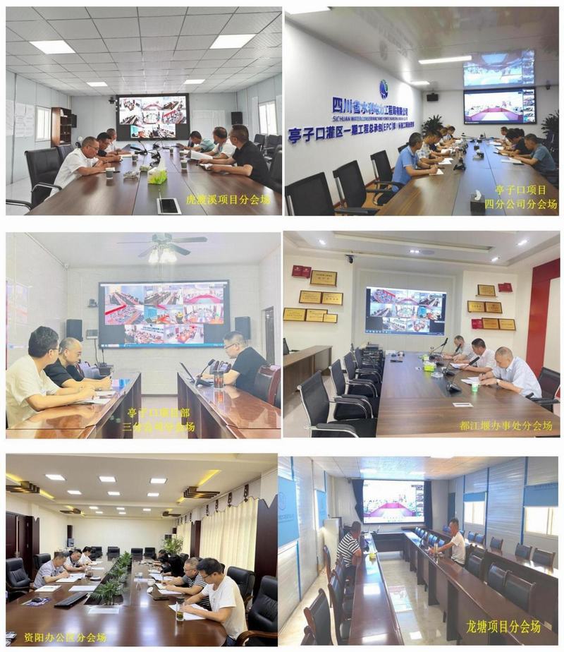 會議采取“現(xiàn)場+視頻”方式召開。主會場設在公司成都總部,資陽辦公區(qū)、都江堰辦事處、亭子口項目部、龍?zhí)另椖坎?、虎渡溪項目部、小井溝支渠項目部設分會場。公司領導李銀剛、唐驚濤、茍仕聰、鄒世界、陳盛華、夏永紅出席會議。公司領導、總部各部門主要負責人在主會場參會,各單位負責人、項目部相關人員在視頻分會場參會。