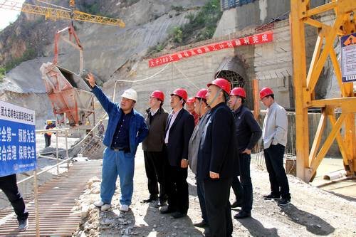 李儉一行詳細(xì)踏勘了九龍峽水電站工程首部樞紐、發(fā)電廠房等施工現(xiàn)場(chǎng)的安全、質(zhì)量、進(jìn)度等情況。聽取了工程進(jìn)展情況的匯報(bào)以及對(duì)今年防汛工作的安排。李儉對(duì)四川省水利電力工程局承擔(dān)的九龍峽水電站首部樞紐工程的施工給予了充分肯定和高度的贊譽(yù),他說(shuō),川工局在九龍峽水電站工程施工過(guò)程中所展現(xiàn)出來(lái)的企業(yè)精神和施工能力詮釋了“水利鐵軍”這個(gè)光榮的稱號(hào)。特別是在大壩基礎(chǔ)及高邊坡地質(zhì)結(jié)構(gòu)復(fù)雜,存在多條斷層、裂隙,施工外部環(huán)境條件差等不利情況下,能做到安全穩(wěn)定、保質(zhì)保量施工,沒有出現(xiàn)問(wèn)題,說(shuō)明在安全預(yù)控及工程質(zhì)量上管理到位,內(nèi)控能力和執(zhí)行能力強(qiáng)。目前大壩形成日上千方混凝土的施工能力,充分說(shuō)明川工局對(duì)予九龍峽水電站工程的高度重視和出色的施工組織能力。希望川工局九龍峽水電站工程項(xiàng)目部抓住當(dāng)前大壩混凝土澆筑的有利時(shí)機(jī),繼續(xù)發(fā)揚(yáng)前一階段施工的積極性,克服困難,統(tǒng)籌好安全、質(zhì)量、進(jìn)度之間的關(guān)系,嚴(yán)把工程質(zhì)量關(guān),向年底發(fā)電目標(biāo)沖刺。同時(shí)強(qiáng)調(diào),要進(jìn)一步落實(shí)超標(biāo)洪水應(yīng)急預(yù)案、防汛物資和搶險(xiǎn)隊(duì)伍,確保防汛預(yù)案能夠隨時(shí)啟動(dòng),做到萬(wàn)無(wú)一失。
