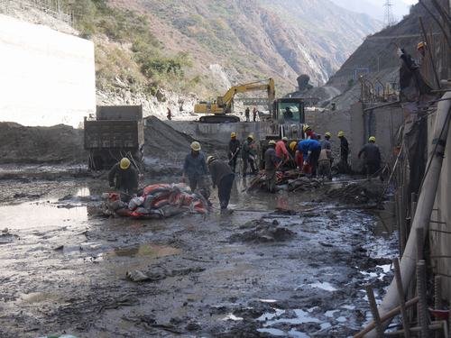 2015年12月14日,局鑫宏工程公司經(jīng)理毛偉率固滴項目部總工鄭中華、生產(chǎn)副經(jīng)理丁忠洪及項目部職工參加了閘壩基坑人工清理工作。