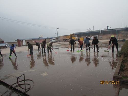 元旦即將來臨,為了為創(chuàng)建優(yōu)美的生活環(huán)境,營(yíng)造清潔、亮麗、文明的節(jié)日氛圍,2015年12月31日下午,銅頭項(xiàng)目部組織全體職工開展環(huán)境衛(wèi)生大掃除活動(dòng)。雖然天氣寒冷,但大家積極參與,不畏嚴(yán)寒,功夫不負(fù)有心人,經(jīng)過大家的辛勤勞作,項(xiàng)目部面貌煥然一新。