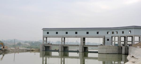 順江堰引水樞紐工程位于新津縣五津鎮(zhèn),主要由2孔進(jìn)水閘、3孔泄洪沖沙閘、270米長的攔河壩、1310米的左右岸上下游堤防等組成,合同金額為3565.8萬元。完成主要實(shí)物工程量:砂卵石開挖37萬方,回填11萬方,混凝土澆筑6.7萬方,膠凝顆粒料填筑2.7萬方,砼孔樁19根,鋼筋制安460噸,房屋建筑557平米,閘門制作安裝85噸,啟閉機(jī)安裝5臺。