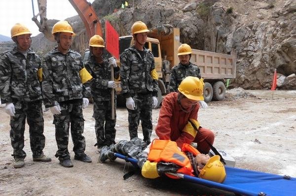 局三機(jī)處博瓦電站項(xiàng)目部為了圓滿完成任務(wù),在應(yīng)急演練前對各環(huán)節(jié)作了周密部署,先后完成了防洪度汛應(yīng)急預(yù)案、演練方案的編制、度汛設(shè)備物資準(zhǔn)備、人員動員、預(yù)演等工作。實(shí)施過程中,主要進(jìn)行了洪水到來前的預(yù)警、人員逃生、現(xiàn)場應(yīng)急搶險(xiǎn)、設(shè)備物資撤離、人員受傷救護(hù)等科目的演練。
