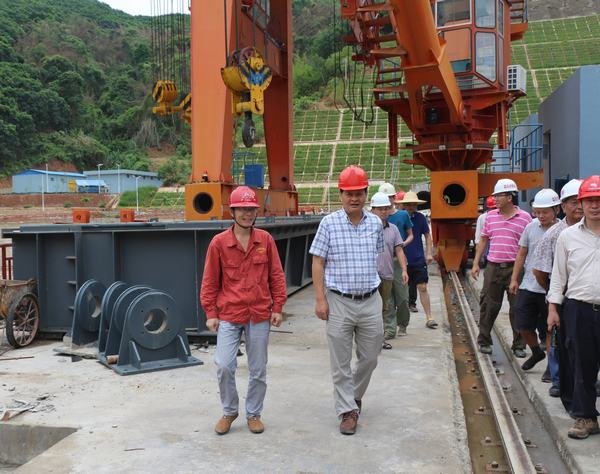 6月1日上午,緬甸四特區(qū)建設(shè)部蔣部長(zhǎng)、緬甸四特區(qū)南板縣縣長(zhǎng)、業(yè)主副指揮長(zhǎng)以及監(jiān)理、設(shè)計(jì)、施工、監(jiān)測(cè)、運(yùn)行方代表到達(dá)現(xiàn)場(chǎng),共同參加此次蓄水儀式。中午12點(diǎn)整,隨著蔣部長(zhǎng)一聲令下,沖沙閘工作閘門緩緩落下,沖砂泄槽出口奔騰的洪水戛然而止,勐瓦水電站順利完成下閘蓄水的建設(shè)目標(biāo)。該目標(biāo)的實(shí)現(xiàn),成為勐瓦水電站建設(shè)重要的里程碑。
