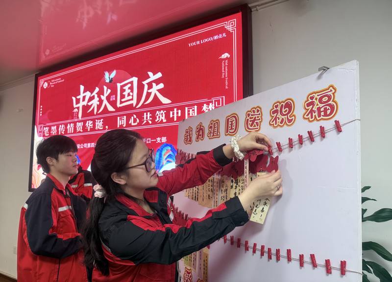 筆墨傳心意,同心賀華誕。在“我為祖國送祝?!杯h(huán)節(jié),現(xiàn)場氣氛熱烈而溫馨,每位職工懷著對祖國的深切熱愛,在祝??ㄆ险J真書寫心中的祝福與期盼,并將卡片粘貼在祝福墻上,讓一張張卡片匯聚成紅色的“祝福矩陣”,為祖國獻上最真摯的禮贊。