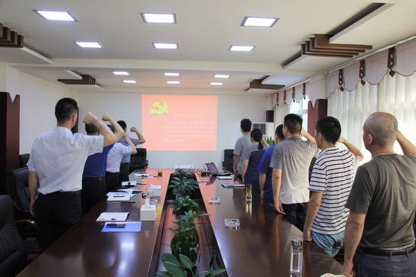 溫慶生首先回顧了99年來黨的光輝歷程,闡明了在“七一”前夕召開支部大會、開展主題黨日活動的特殊意義。在溫慶生的領(lǐng)誓下,全體黨員佩戴黨徽面向鮮紅的黨旗莊嚴(yán)宣誓,鏗鏘有力的誓言,再次彰顯了共產(chǎn)黨人的初心和使命。