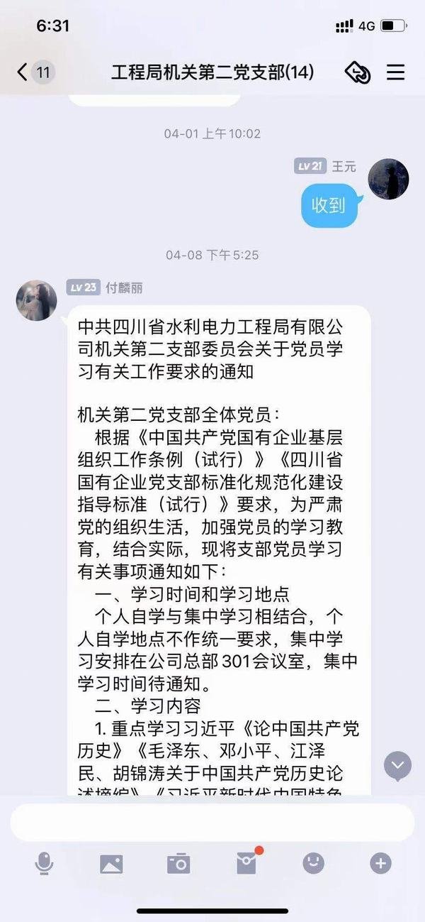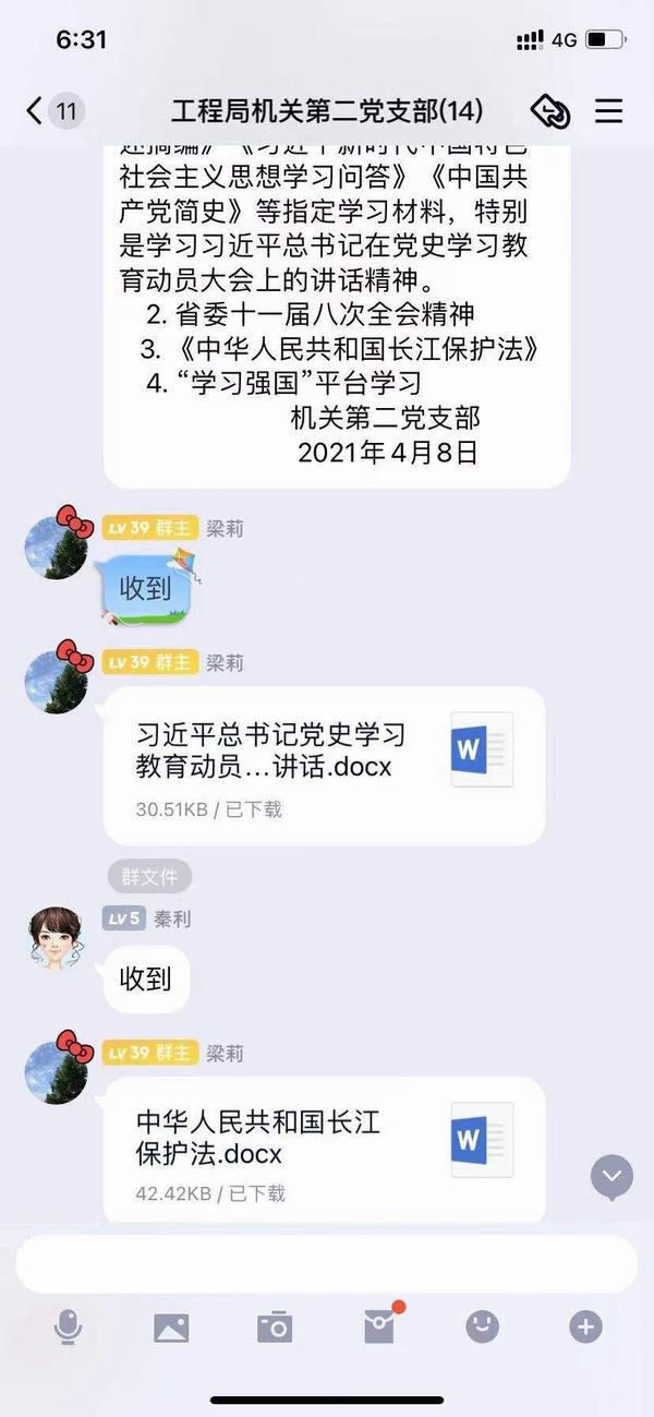 機(jī)關(guān)第二黨支部利用支部QQ群對(duì)黨史學(xué)習(xí)教育作出要求(2021.04.08)