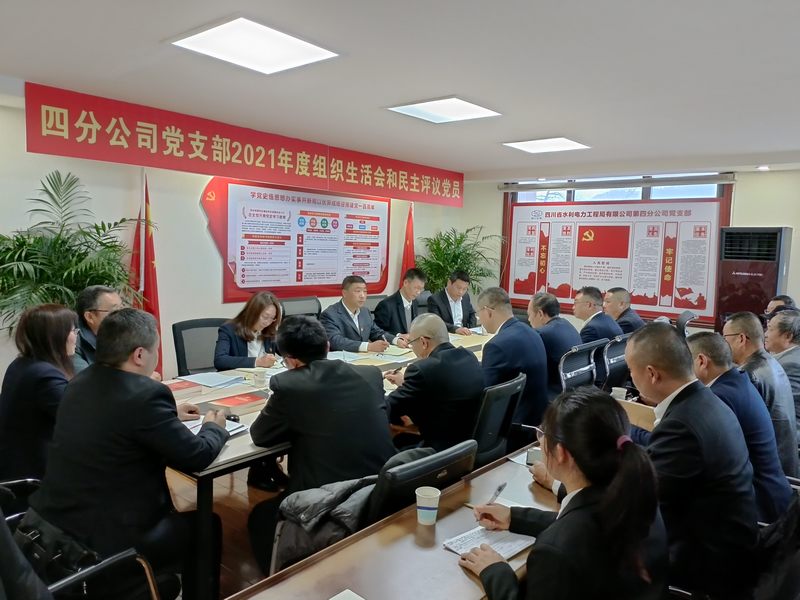 2022年2月22日,四分公司黨支部在都江堰水利大廈5樓黨員活動(dòng)室組織召開(kāi)2021年度組織生活會(huì)和民主評(píng)議黨員。會(huì)議由四分公司黨支部書(shū)記孫紹陽(yáng)主持,四分公司全體黨員參加會(huì)議,四分公司非黨員班子成員列席會(huì)議。