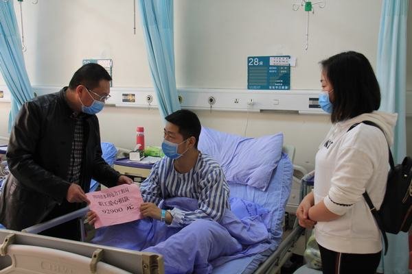 病魔無情,人間有愛。工作十分出色的曾榮章同志,因其身患嚴(yán)重的腎衰竭需要進(jìn)行換腎手術(shù)導(dǎo)致家庭陷入困境。工程局對(duì)此十分重視,局工會(huì)聯(lián)合曾榮章所屬的四處工會(huì)向全局職工發(fā)起了“用您的愛心點(diǎn)燃希望”的倡議,全局廣大干部職工紛紛響應(yīng),慷慨解囊。涓涓細(xì)流匯成河,截止2018年3月26日上午,共收到全局干部職工捐款92900元。下午,代勇一行將全局干部職工捐贈(zèng)的92900元愛心款,送到了一周前做完換腎手術(shù)剛從重癥監(jiān)護(hù)室出來的曾榮章手中,并鼓勵(lì)他樹立信心,勇敢戰(zhàn)勝病魔,早日回到工作崗位多做貢獻(xiàn)。