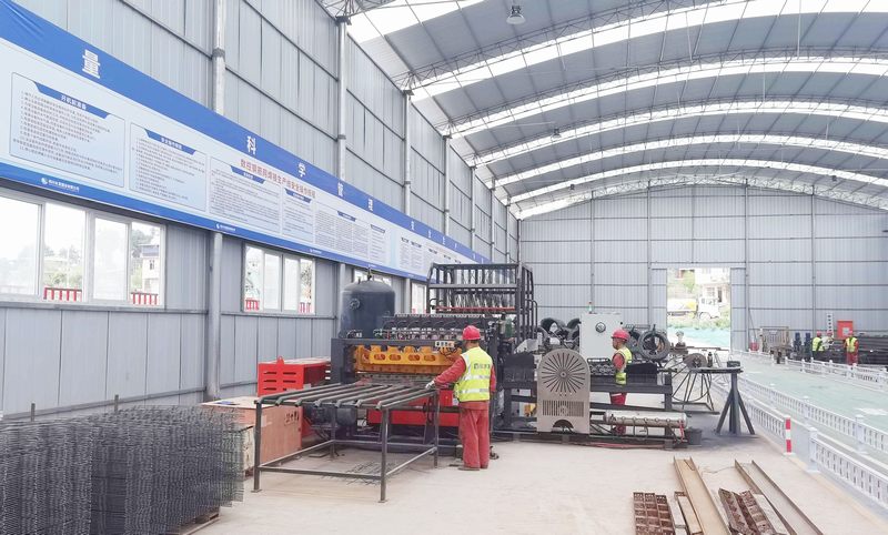 建設公司承擔施工的亭子口灌區(qū)一期工程總承包第Ⅰ標項目二流量段位于蒼溪縣境內(nèi),觀音寺渡槽是本標段最長(840m)、架空最高(65m)的渡槽,渡槽橫跨東河,河面寬度220m,是控制性工期關鍵工程。項目部在策劃時,根據(jù)觀音寺渡槽鋼筋使用量大、工藝制作標準高等特點,同時以觀音寺渡槽為中心,兼顧周邊工程大量鋼筋加工制作的需求,針對性引進了行業(yè)內(nèi)領先制造企業(yè)的數(shù)字化鋼筋加工生產(chǎn)線,高標準規(guī)劃建成了數(shù)字化鋼筋綜合加工廠。目前,該加工廠已投入使用的數(shù)字化生產(chǎn)線生產(chǎn)效率高、質(zhì)量標準可靠的優(yōu)勢初步顯現(xiàn),對實現(xiàn)“機械化換人、自動化減人”,促進安全生產(chǎn)、提質(zhì)增效將起到重要作用。