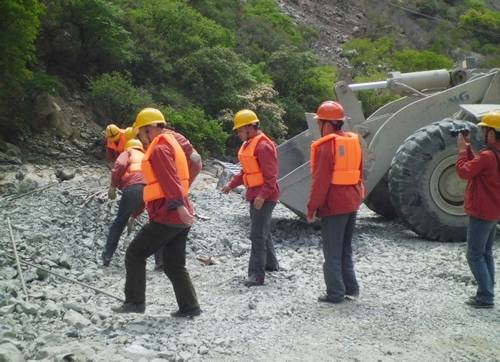 2014年5月14日14:00,固滴電站項目部常務副經(jīng)理、防洪演練現(xiàn)場總指揮毛偉發(fā)出指令:“我部接到監(jiān)理部轉(zhuǎn)木里縣氣象局通知,未來一小時內(nèi)將有一次強降雨,水洛河水位將急劇暴漲,請各工作面所有施工人員迅速撤離現(xiàn)場并轉(zhuǎn)移現(xiàn)場機械設(shè)備及材料”。當聽到指令后,各施工班組在負責人的帶領(lǐng)下,所有人員快速、有序地撤離到指定的安全地點。與此同時,抗洪搶險小組成員在組長鄭中華、張方清的帶領(lǐng)下,迅速進入現(xiàn)場將設(shè)備和材料全部轉(zhuǎn)移至安全地點,最后清點人數(shù)。演練結(jié)束,整個過程有條不紊。