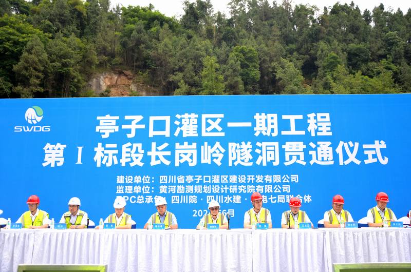6月6日下午,由建設(shè)公司承建的亭子口灌區(qū)一期工程I標(biāo)總干渠長崗嶺隧洞全線貫通儀式在長崗嶺隧洞進(jìn)口舉行。建設(shè)公司黨委書記、董事長袁斌,亭子口公司黨委書記、董事長廖建強(qiáng)出席儀式。