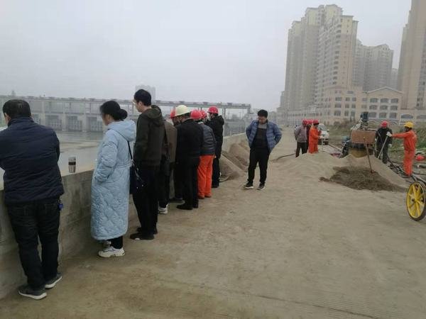 2020年11月30日,成都市天府水城城鄉(xiāng)水務建設有限公司代表唐力勁一行到四川省水利電力工程局有限公司地基工程處承建的金堂縣沱江盤龍寺攔河閘左岸堤防面板裂縫處理工程現(xiàn)場見證生產(chǎn)性試驗成果。成都市水利電力勘測設計院、四川省禾力建設工程檢測鑒定咨詢有限公司、四川瑞泰項目管理有限公司、四川省水利電力工程局有限公司金堂縣沱江盤龍寺攔河閘工程項目經(jīng)理部等各單位相關人員一同見證。