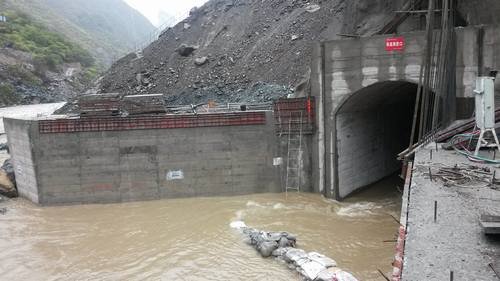 2014年7月16日,導流洞全面過流(水洛河最大洪峰流量650m3/s),業(yè)主建管部率設計、監(jiān)理、其他施工單位來我局項目部表示祝賀并給予了高度評價。