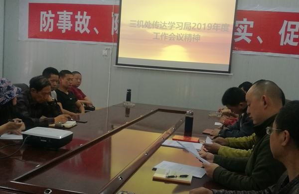 2019年4月11日,三機(jī)處在博瓦電站項(xiàng)目部組織全處職工學(xué)習(xí)貫徹工程局2019年工作會議精神,會議由支部副書記、工會主席閻旭主持。