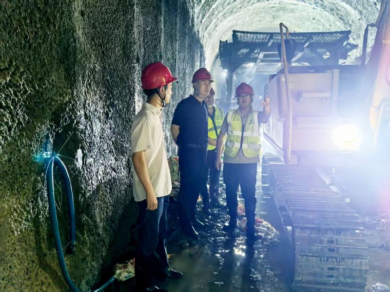 袁斌深入施工一線,實地查看了V標(biāo)段沱江管橋、黃巔咀隧洞和Ⅳ標(biāo)段百里沖綜合加工廠、新窩咀隧洞等,了解當(dāng)前各工區(qū)的施工進展情況。施工現(xiàn)場負責(zé)人就工程進度、存在問題及應(yīng)對措施做匯報,袁斌進一步詢問項目下一步施工計劃并提出意見建議。