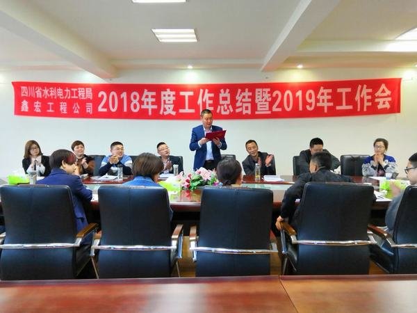 2019年4月11日,鑫宏工程公司在都江堰水利大廈會議室召開了2018年度年終總結(jié)暨2019年工作會。會議由公司辦公室主任何莉容主持。