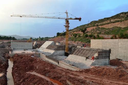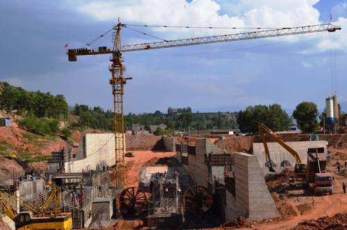 1、壓力前池底板共10個塊號,本月完成3個塊號砼澆筑完成;前池右側(cè)4#擋墻澆筑完成,5#擋墻還差7m到頂主高程,6#擋墻還差3m到頂高程;前池左側(cè)溢流堰共六段,其中1號澆筑到1909m高程,2號號澆筑到1910.75m高程,3號澆筑到1908m高程,4號澆筑到1912.5m高程,5號澆筑完成,6號澆筑到1912m高程(設計堰頂高程1915.75m高程);溢流堰消力池下游擋墻澆筑完成,18.29m段底板澆筑完成。