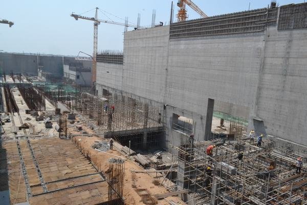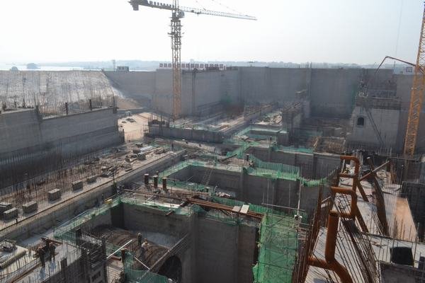 安裝間副廠房廠房機(jī)組段上游魚道反護(hù)坡閘壩閘壩消力池全景