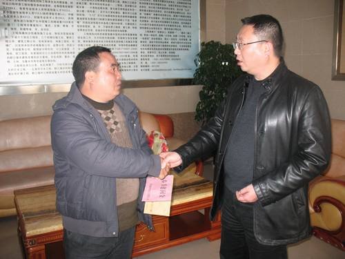 代勇對省級勞模、局都江堰辦事處主任鄔清貴進(jìn)行了慰問,感謝勞模們?yōu)閱挝坏陌l(fā)展、職工的成長付出的心血和汗水,并致崇高的敬意!隨后,在鄔清貴及都江堰辦事處黨支部書記、工會主席孫代華等陪同下,代勇一行慰問了精神病患者、在2008年地震中失去妻子的困難職工盧朝東,身患眼疾的困難職工龍達(dá)治,為他們送上慰問金和慰問品,并與他們親切交談,詢問目前的工作生活情況,送去了局黨委、行政、工會的關(guān)心問候及新春祝福。同時,把鄔清富局長、局紀(jì)委書記王裕明給結(jié)對幫扶職工的慰問金分別送到了因燒傷致殘的馬理及盧朝東手中,對組織的關(guān)懷和領(lǐng)導(dǎo)的關(guān)愛,他們表示誠摯的感謝。