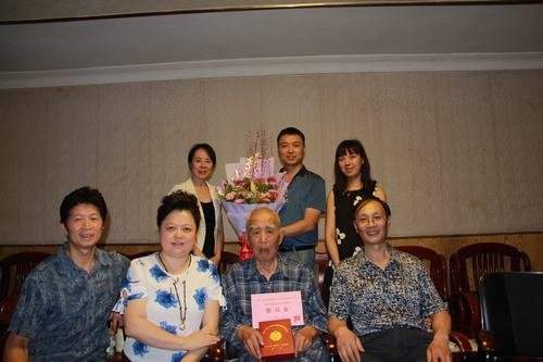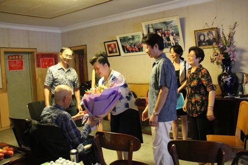 廳離退處副處長(zhǎng)謝忱向吳老獻(xiàn)上鮮花