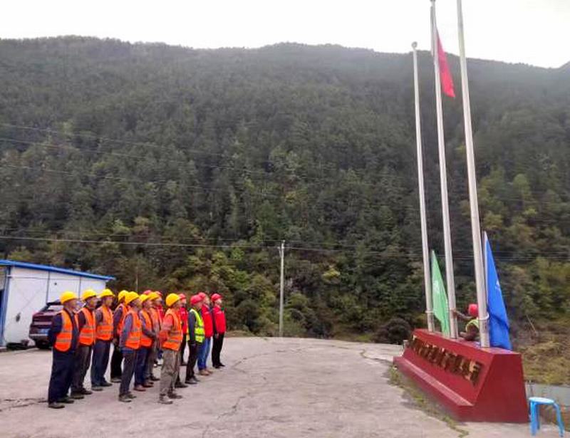 不忘初心擔(dān)使命,禮敬國(guó)旗慶國(guó)慶。亭子口、三四溝、隴西項(xiàng)目分別在駐地辦公樓前舉行國(guó)慶升旗儀式。晨光初照,伴隨著雄壯激昂的國(guó)歌聲,鮮艷的五星紅旗冉冉升起,全體職工肅立注目,共同祝愿祖國(guó)更加繁榮昌盛。